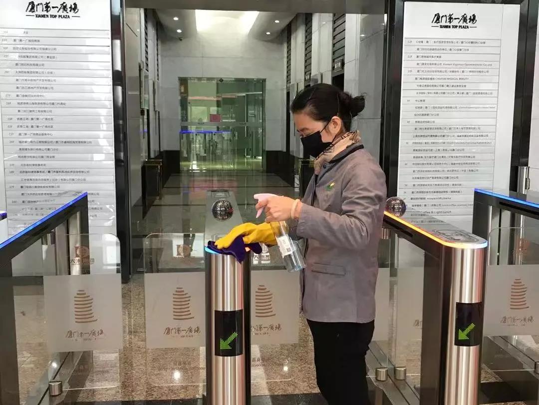 大到每日對進出人員的體溫測量登記,對辦公區(qū)域、大堂、電梯等各個大大小小公共區(qū)域的全面消毒凈化工作,以及嚴格執(zhí)行復工備案制度、每日報告制度等;小到為客戶提供防控疫情指南以及電梯按鍵用紙、廢棄口罩專用垃圾桶的設置等;但凡涉及到寫字樓的疫情防控工作,廈門第一廣場物業(yè)服務中心都分派專人進行管理與追蹤,事無巨細,只為確保每一項防疫工作落實到位,確保盡最大努力為業(yè)戶織就牢固的全方位辦公防疫網。